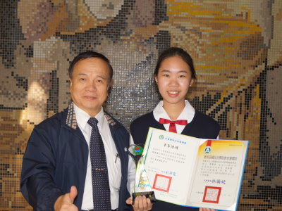 國中的時對美容很有興趣,聽很多人說樹德美容科很有名,所以樂學我選擇樹德。高一時,聽到學姐獲得金手獎,心中十分羨慕,希望有朝一日我能向學姊一樣優秀!剛開始我的美髮成績並不理想,在班上也不是最突出的,但我沒放棄,我每天多花了兩倍的時間練習人頭,把老師上課教的重複練習,假日我也沒休息,約了班上幾個同學到學校練人頭,好不容易當上家事正選手,過程中遇到很多瓶頸,有好幾次想放棄,但是想到媽媽給我的支持和鼓勵,於是我又重拾信心向著目標前進,最後,一年多的集訓讓我得到了金手獎,我告訴自己這些日子和辛苦都值得了。