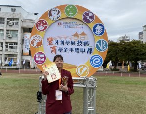 一開始我成為正選手後也沒有一點選手的架勢,直到我想通我是為了自己的未來在拚搏後,我才開始全力衝刺,在這期間包含科主任及指導老師甚至是班導都對我說了好多的道理,如果沒有他們就不會有現在能得獎的戴以淇,尤其是帶了我三年的班導,沒有他我連選手都不會是,感謝各位老師,我真的很開心我能得獎。 |