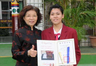 我要感謝學校給我機會,陳茂霖主任對我的關懷和鼓勵,更要感謝張慧香老師的用心指導,當我的作品有地方出錯的時候,老師就會糾正我,告訴我應該怎麼做會比較好,我很高興能代表學校參加這次的比賽,經過這次的訓練讓我的技
