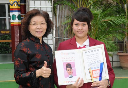 在這段時間裡,不管比賽的結果如何,我學到了很多很多東西,這是結果無法取代的。想當初一年級就開始留下來訓練,在這中間從不會到會,也換了指導老師,剛開始與抽籤選手不熟也沒交談過,但是自從開始練習時互相交流了很多東西,很謝謝老師每天不畏辛苦的指導我們,雖然常常練習練到挫折,但是自己清楚 地知道,一生只有一次的機會,不能怕跌倒,要努力站起來。 每當作品有不好的地方,謝謝美容科老師們的指教和糾正,才能一次次達到一定的水準 。回到班上時,班上的同學和班導總是給我鼓勵打氣,真的很感動,原來不是我自己一個在奮戰。 |