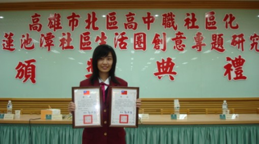 1、95年度高雄市區高中職社區化蓮池潭社區生活學生創意專題研究報告第一名